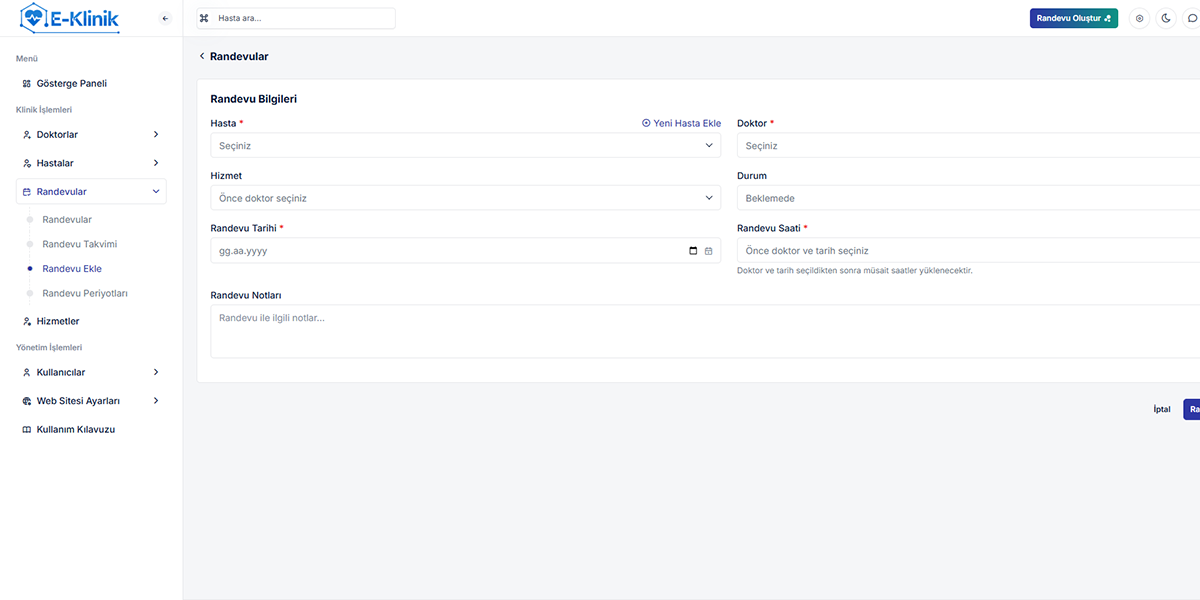 E-Klinik - Online Randevu ve Hasta Yönetim Sistemi