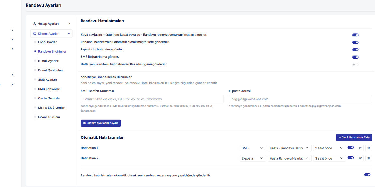 - Otomatik randevu hatırlatma
