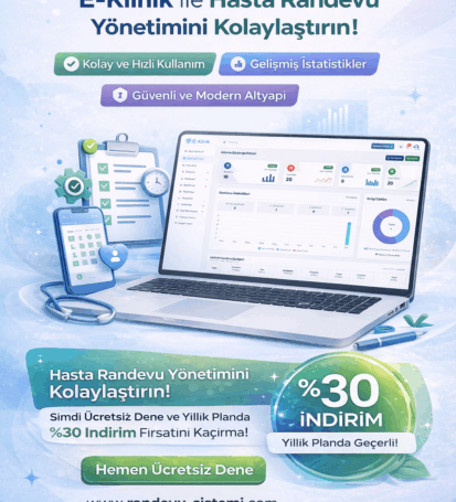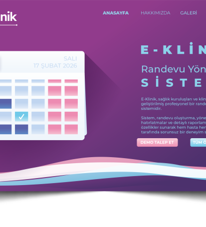 E-Klinik Randevu Sistemi Nedir? Kimler İçin Uygun? (2026 Güncel Rehber)E-Klinik randevu yönetim sistemi; hastane, klinik ve muayenehaneler için online randevu, hasta yönetimi ve otomatik hatırlatma çözümleri sunar. Tüm detaylar burada!E-Klinik Randevu Sistemi Nedir?Sağlık sektöründe dijitalleşme artık bir tercih değil, zorunluluk haline geldi. E-Klinik Randevu Yönetim Sistemi; sağlık kuruluşlarının randevu süreçlerini, hasta yönetimini ve operasyonel işleyişini tek panel üzerinden yönetmesini sağlayan modern bir yazılımdır.